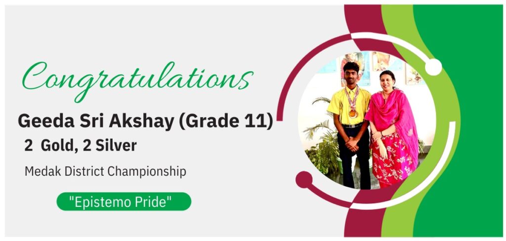 Geeda Sri Akshay of Grade 11 has made us proud by winning 2 Golds and 2 Silvers at the Medak District Championship